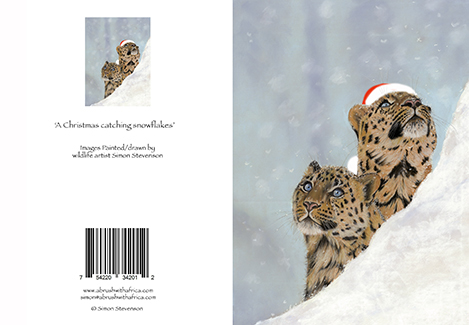 Click to enlarge A Christmas catching snowflakes An image of two Amur leopard sibling watching snow fall Product NameQuantityPrice Christmas card (single) AU$ 1.75Add to Basket This image was sketched using pastels MINIMUM ORDER of 6 CARDS (PICK & MIX) The inside of the card has been left blank for your own message