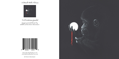 Click to enlarge A Christmas puzzle A young gorilla inspects the bobble from a Christmas hat. Product NameQuantityPrice Christmas card (single) AU$ 1.75Add to Basket This image has been sketched using CHALK & CHARCOAL MINIMUM ORDER 6 CARDS (PICK & MIX) The inside of the card is left blank for your own message.
