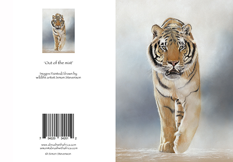 Click to enlarge Out of the Mist card A Tiger appears through a cold mist Product NameQuantityPrice Greeting Card (Single) AU$ 1.75Add to Basket The Orginal of this image was sketched in Pastel MINIMUM ORDER of 6 CARDS (PICK & MIX) The inside of the card has been left blank for your own message