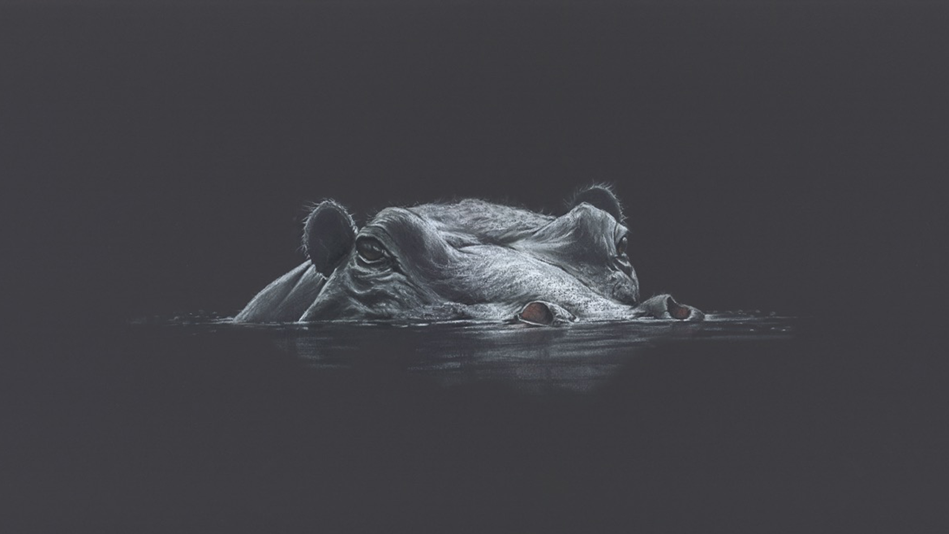A hippo wallows in a pool