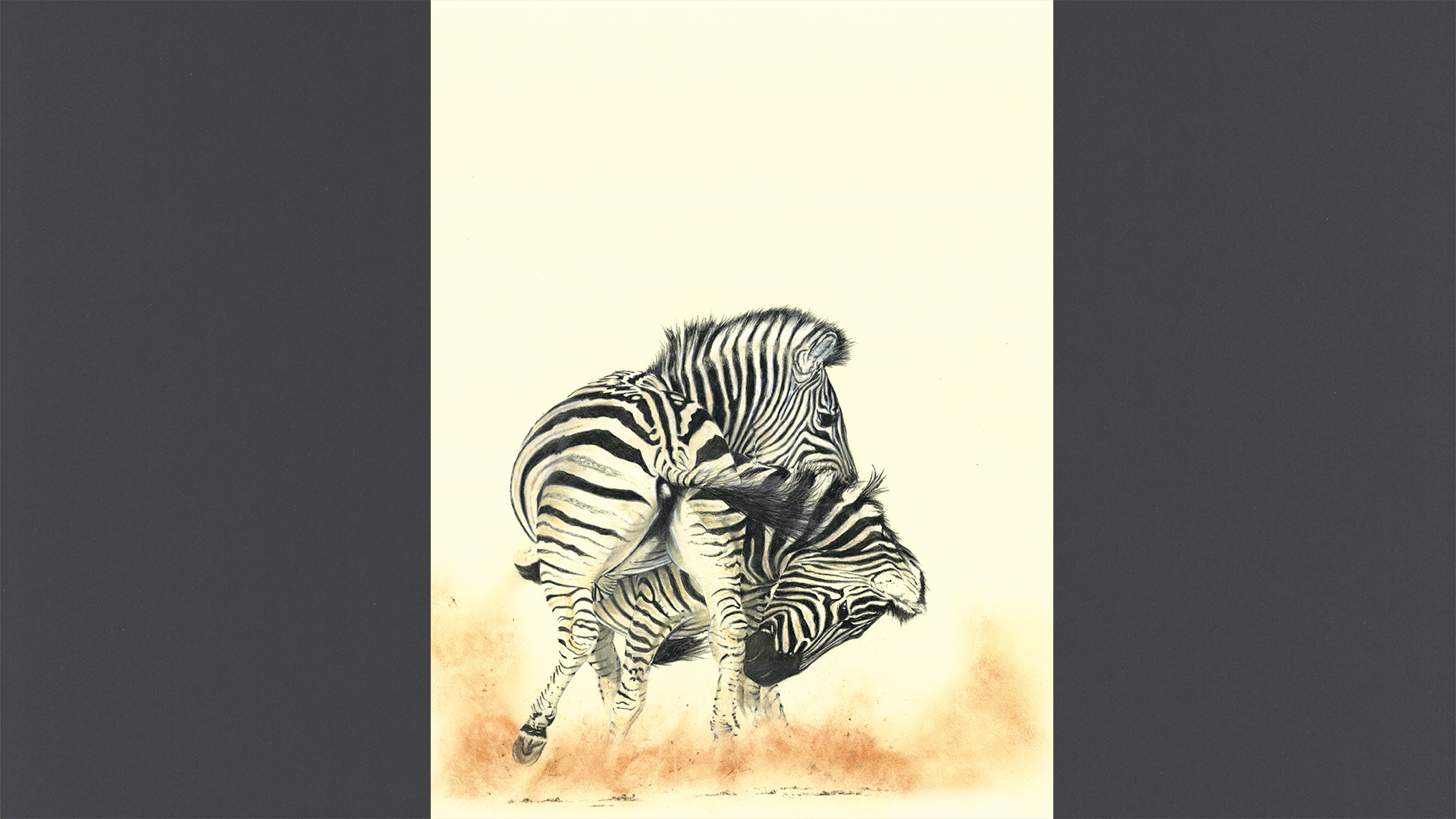 A Pair of Burchell's stallions rear up in battle in a show of dominance